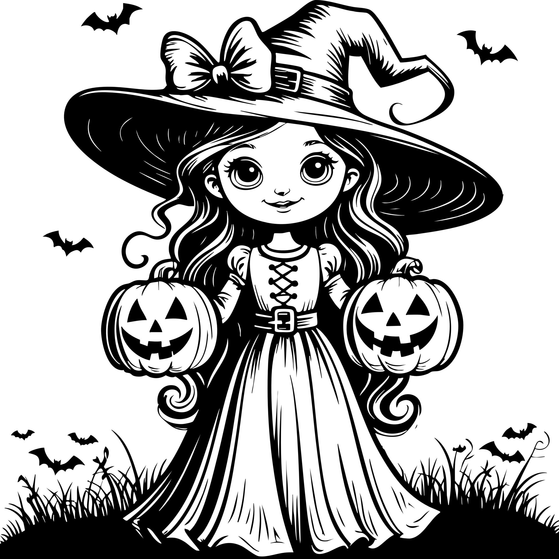 Enjoy a witchy coloring page, perfect for a cozy afternoon break.